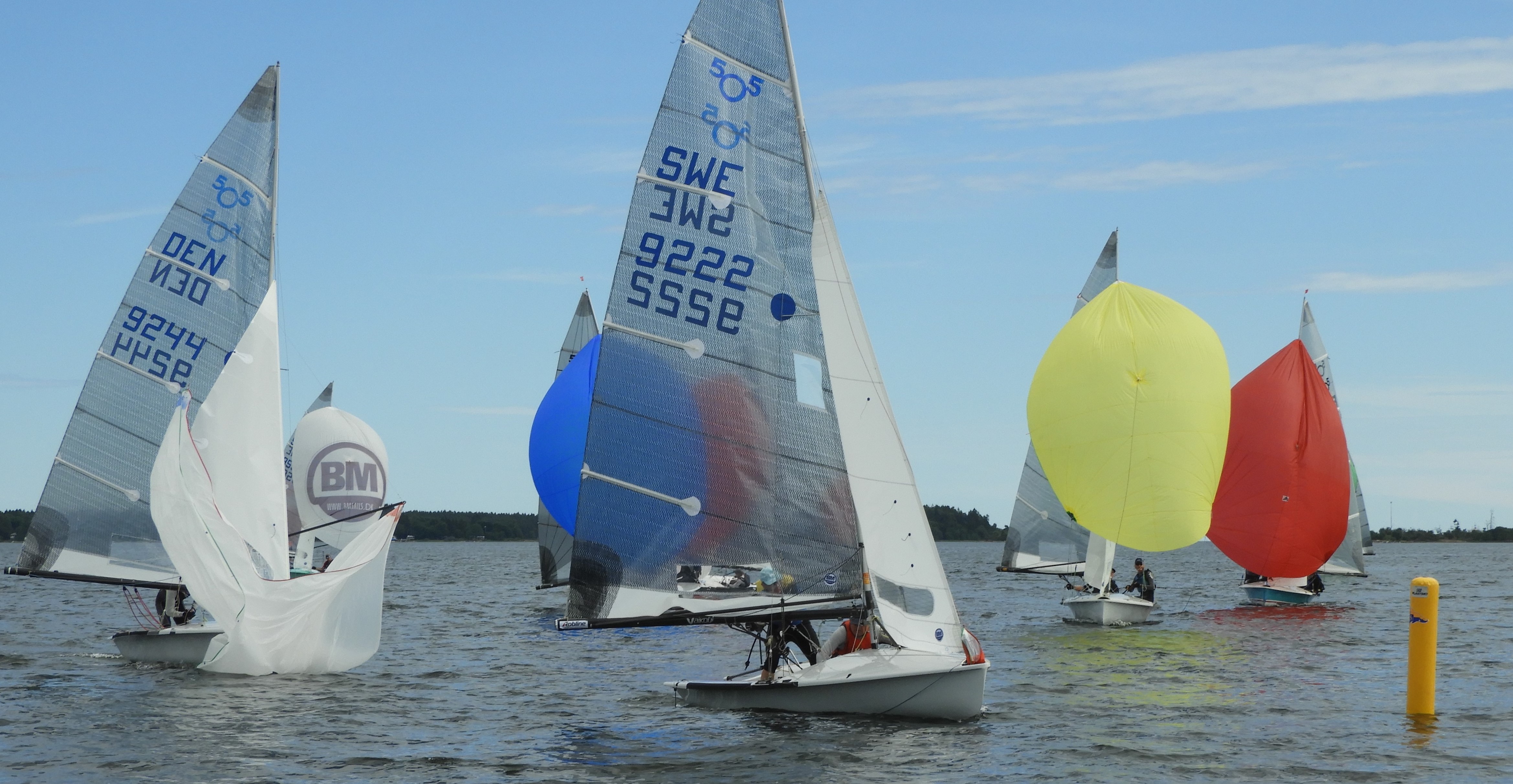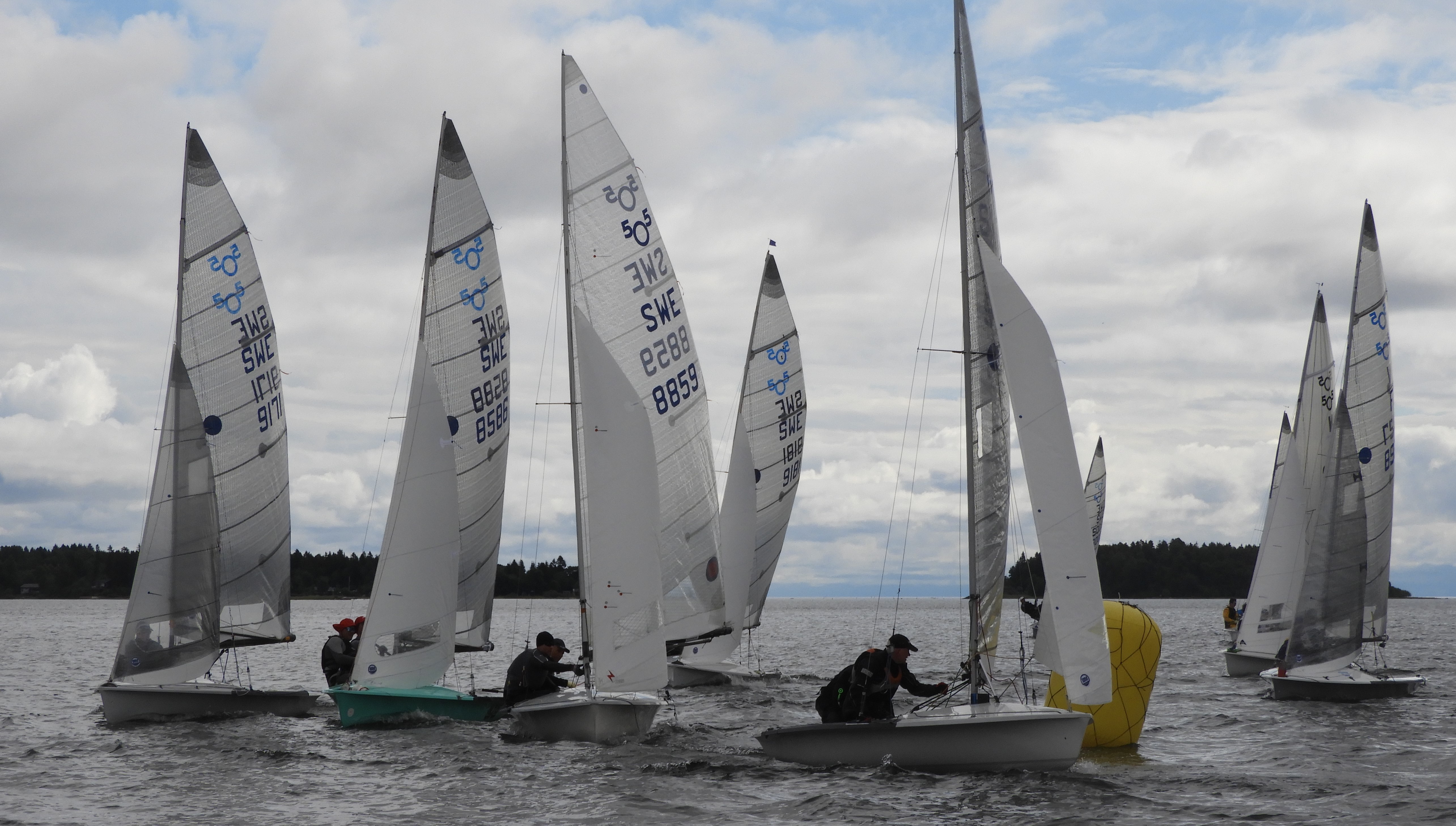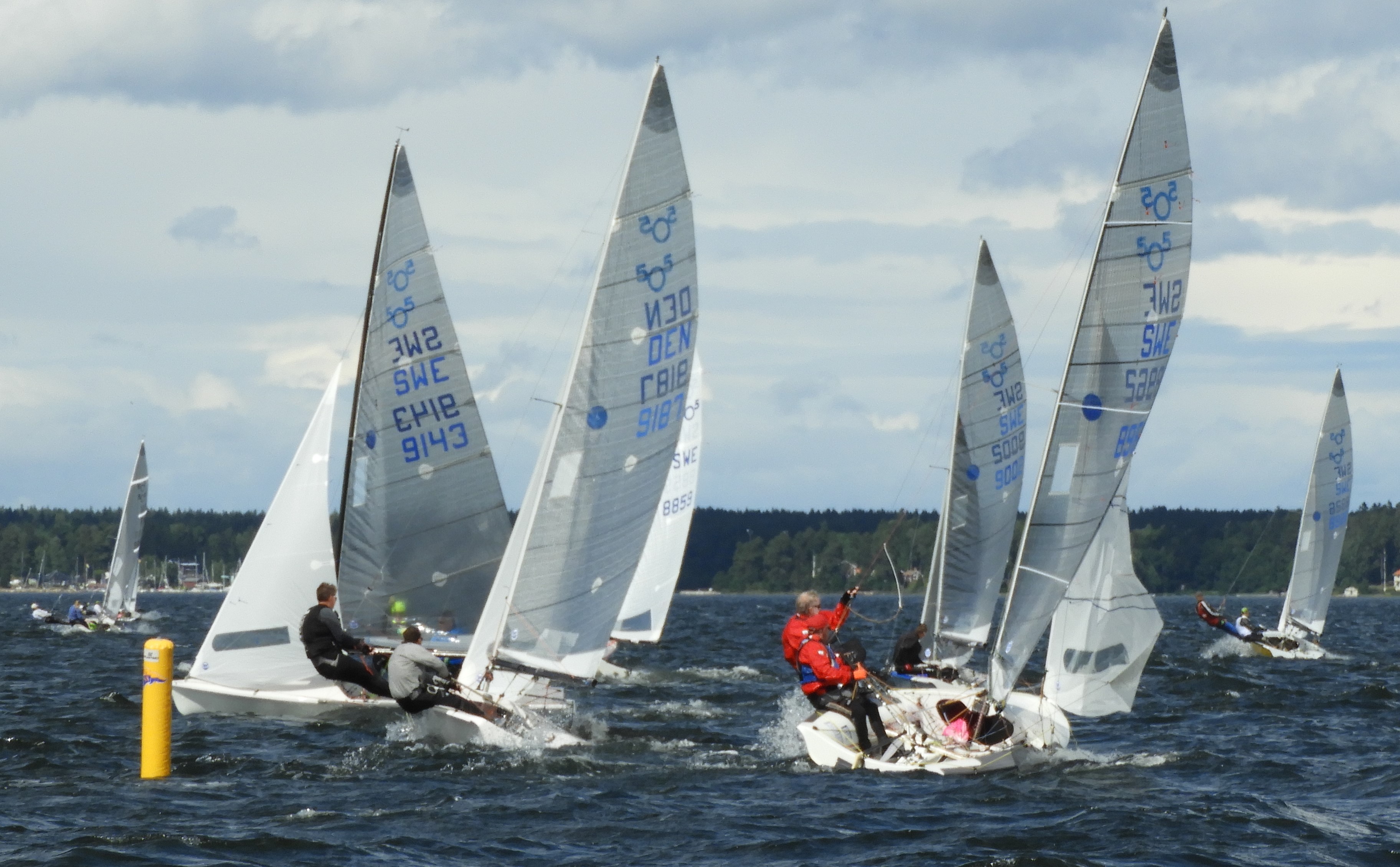 Innan vi berättar med om tävlingen vill jag återknyta till inledningsfrågan. Varför ägnar vi en stor del av vår tid, semester och pengar till att i mogen ålder tävla i jollesegling? När det går bra är frågan ganska lätt att besvara, men för att ekvationen ska gå ihop måste den ha ett bra svar även när prestationen inte är på topp. Det är lätt att ifrågasätta rimligheten i att lägga merparten av sina semesterdagar på förberedelser och tävlande när man sumpar en start, trasslar till spinnakern och måste bryta, inte får bra gång i båten eller återigen missbedömer vägvalet. Prestationen och resultaten i sig är inte huvudsaklig drivkraft eller målet för oss som amatörseglare (om ändock på en hög nivå ;.)). Att tävla i 505 är ett aktivt, och i vår livssituation relativt extremt val, och vi behöver båda två vara överens om att just det valet, just nu är ett bra val, även de race, dagar eller hela tävlingar då det är motigt. I själva tävlingsmomentet ligger att vi aldrig kan komma ifrån att det känns bra mycket roligare när prestationen är god. Men så är det ju med vilket semesterval som helst, det känns roligare om solen skiner, om alla är friska, om maten är god osv, men vi ifrågasätter inte hela grejen med semesterresan för att det regnar en dag. För oss är det lite likadant med Five-seglingen. Det är allra roligast när vi är har gett oss själva goda förutsättningar och lyckas prestera väl, men att få segla världens skönaste jolle tillsammans och träna och tävla ihop med världens härligaste gäng, det är kul och utmanande oavsett. Vi känner oss coola, levande och håller oss unga när vi får leka på havet och det är underbart!