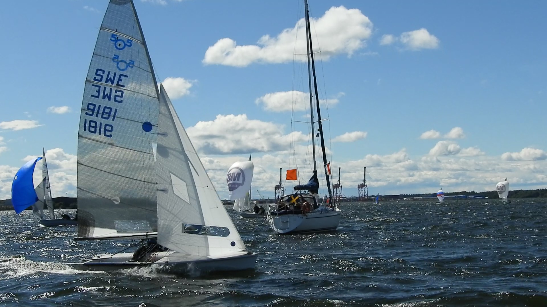 Dagens visionäre ordförande, Carl-Magnus, och hans team välkomnade oss Five-seglare med enorm värme och omtanke. Det var ett all-inklusive arrangemang där man inte behövde lämna Huseliiharen utan kunde bo i friggebodar på armlängds avstånd från båten, äta frukost i det anrika klubbhuset, njuta after-sail med live-musik, korv och öl, värma sig i bastun och dessutom invigning, regattamiddag och en trevlig prisutdelning, allt välbevakat av lokalpressen. Det fanns också ett helt dagsprogram för de som var på land med tema havsmiljön i Östersjön. En effektiv och kompetent seglingsorganisation såg till att alla 11 planerade seglingar kunde genomföras trots bitvis utmanande lätta och vridande vindar.